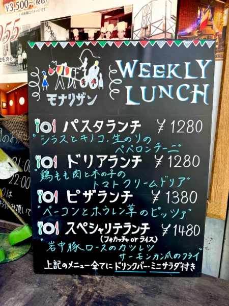 今週もモナリザンの歴史と料理人のアイデアがたくさん詰まったメニューをご用意して、皆様のお越しを心よりお待ちしております。